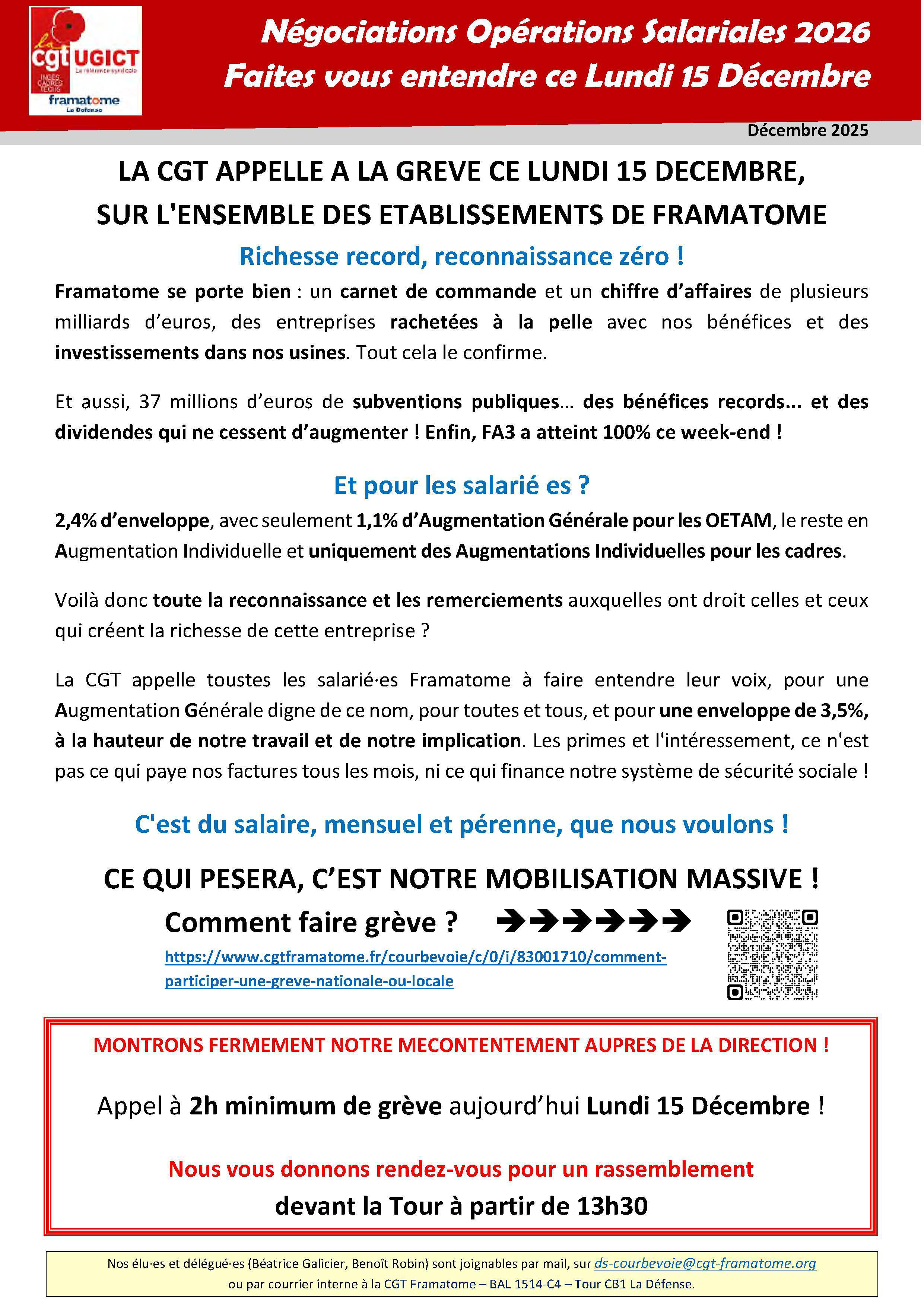 Vous pouvez aussi trouver toutes les expressions CGT dans l'intranet Framatome, notamment les fiches de salaires par établissement pour 2025, dans notre communauté CGT-Framatome (lien accessible seulement à partir du réseau Framatome).