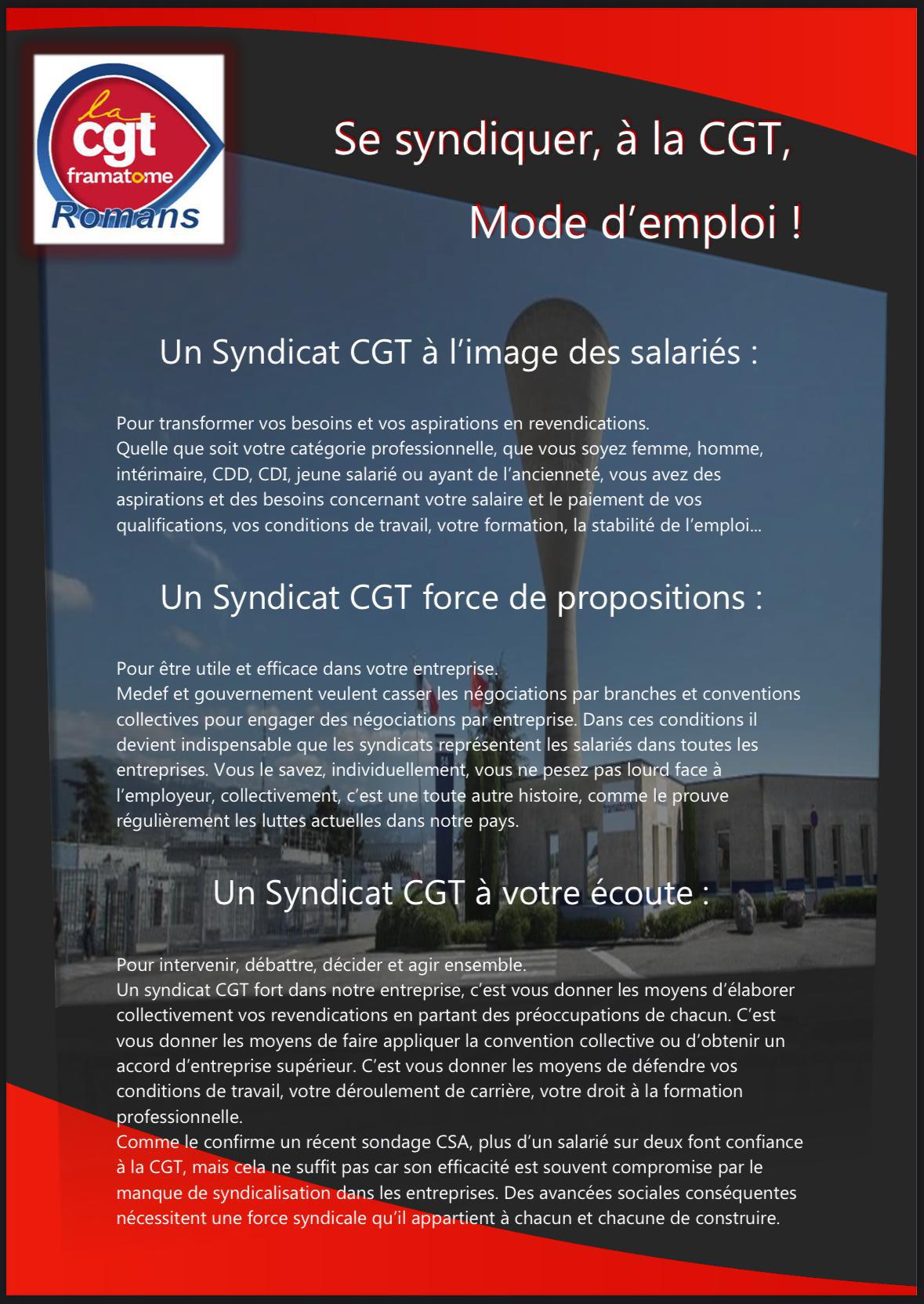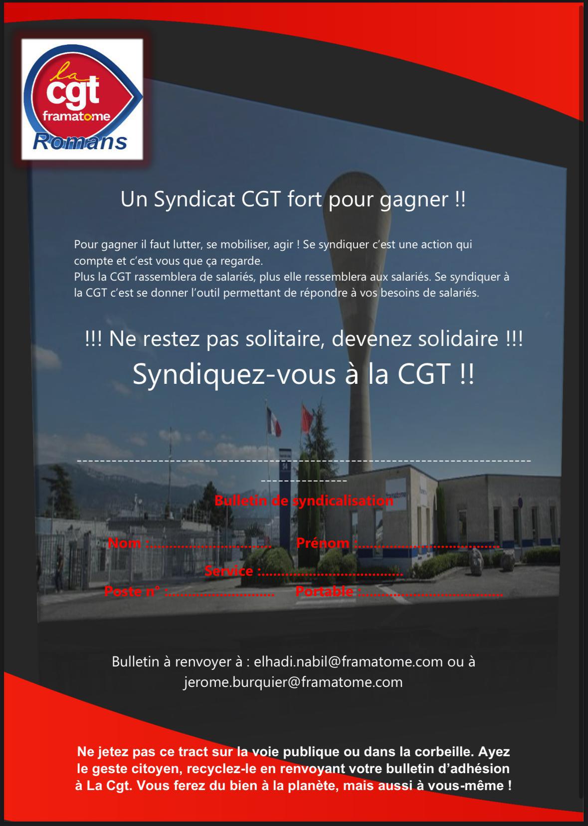 Voici le livret d'accueil de la CGT Framatome Romans. Tu viens de te faire embaucher ou bien tu as compris que c'était un devoir, un besoin de se syndiquer? Rejoins la CGT et envoies ton bulletin d'adhésion aux adresses mails que tu trouveras dans le livret d'accueil ci-joint.